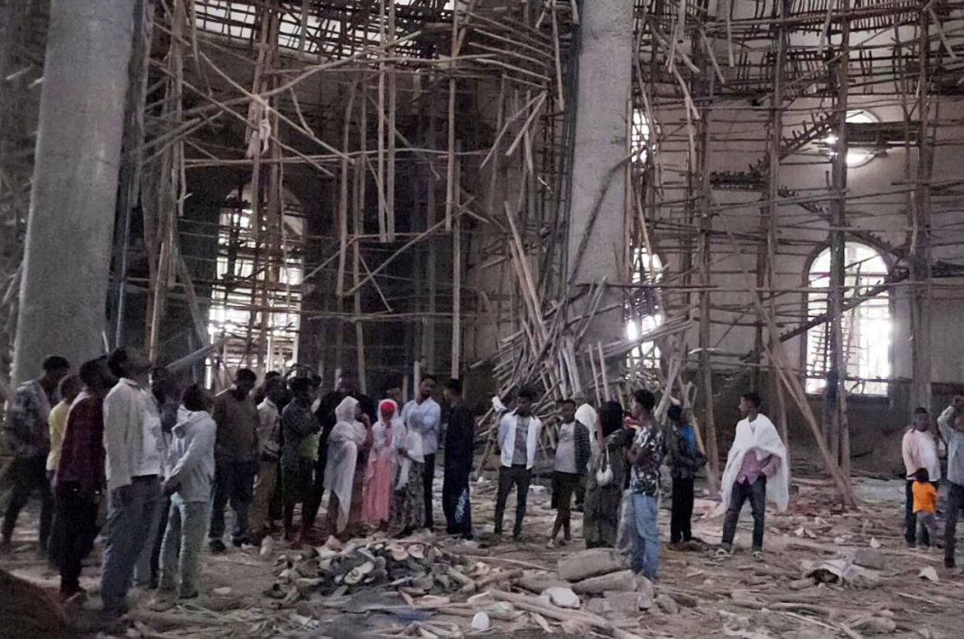 A collapse at a church under construction in Ethiopia kills at least 25 worshippers