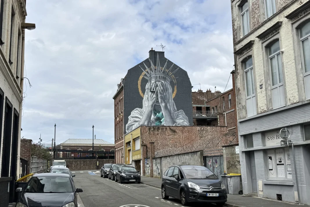 The mural in Roubaix is part of an urban street culture festival backed by the town. Roubaix is one of the poorest towns in France. It was economically devastated by the collapse since the 1970s of its once-flourishing textile industry that used to attract migrant workers from elsewhere in Europe, north Africa and beyond.