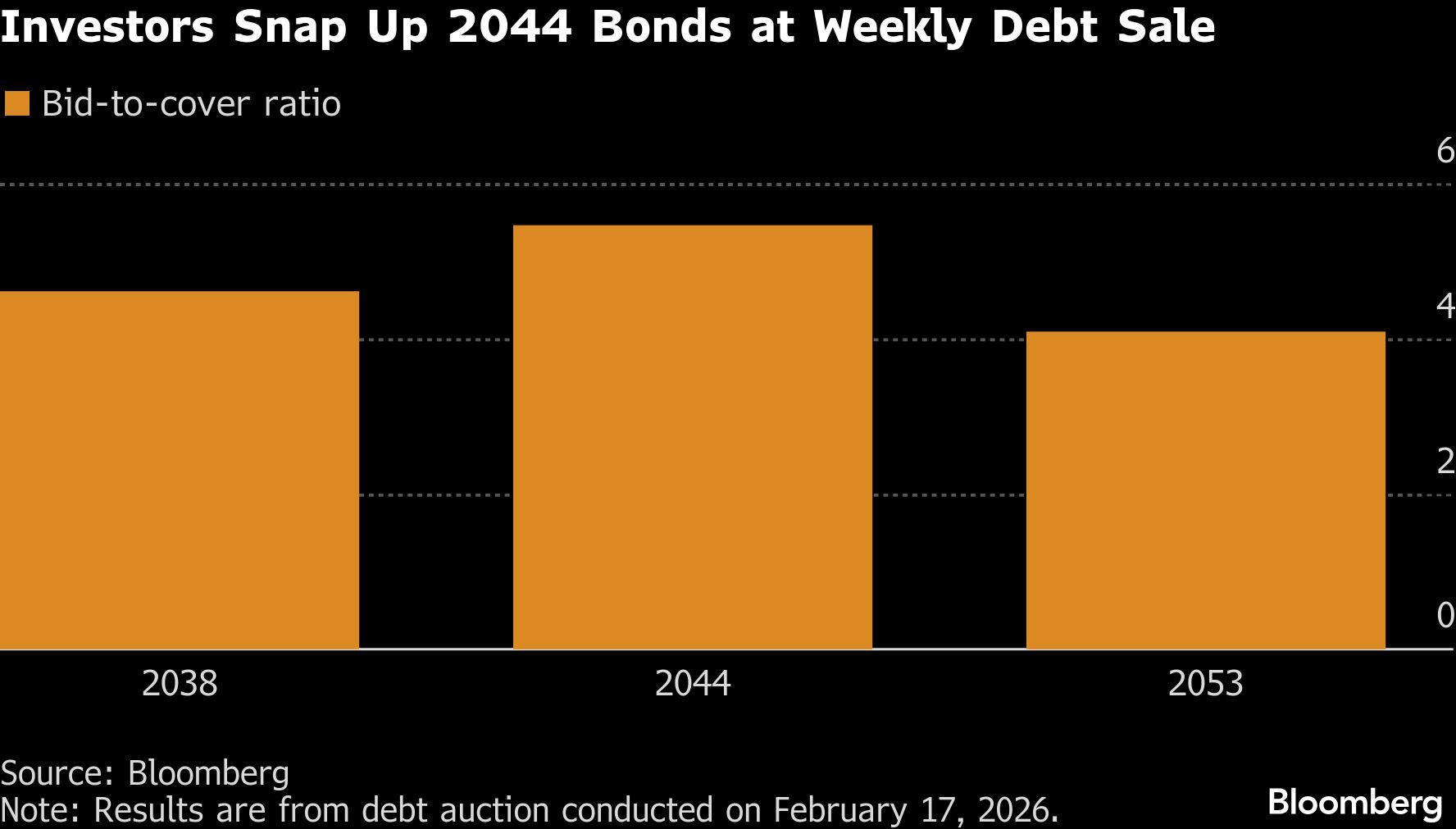 Long-dated bonds attracted the strongest demand, signaling confidence the government will rein in the budget deficit, leading to a reduction in debt issuance. Securities due 2044 drew orders of R5.46 billion, or 5.5 times the amount on sale.