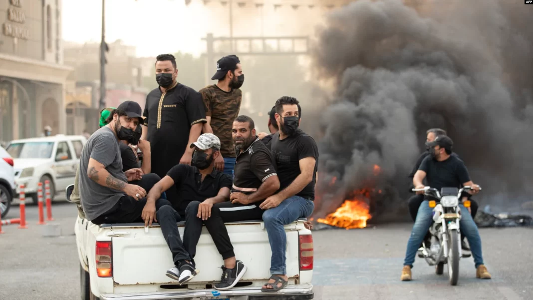 Iraq’s military announced a nationwide curfew, and the caretaker premier suspended Cabinet sessions in response to the violence. Medical officials said dozens of protesters were wounded by gunfire and tear gas and physical altercations with riot police.