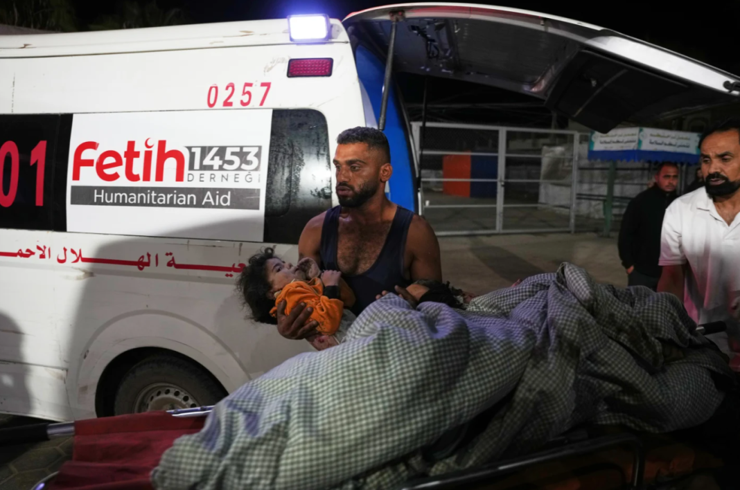 First, the Aqsa Hospital in Gaza’s central city of Deir al-Balah reported at least 10 bodies, among them three women and six children. In southern Gaza, the Nasser Hospital in Khan Younis said it received 20 bodies after five Israeli strikes in the area, of which 13 were children and two were women.
