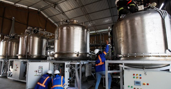 In the scrublands of central Kenya, technicians monitor four large metallic tanks where steam heated by the Earth’s crust is used to pull carbon dioxide from the air in an effort to limit global warming.