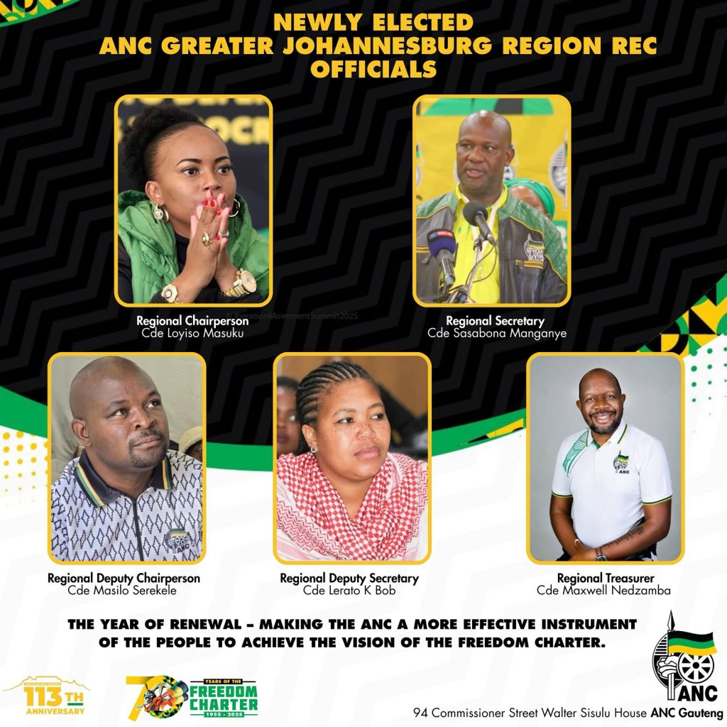 The ANC in Johannesburg has elected Loyiso Masuku as its regional chairperson, making her the first woman to lead the party in the city.