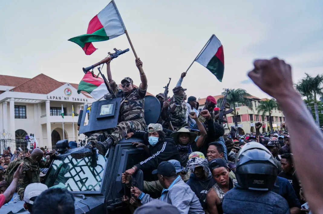 Those protests, which were initially led by youth groups, reached a turning point on Saturday when soldiers from the elite CAPSAT military unit accompanied demonstrators to a square in the capital, Antananarivo, and called for Rajoelina and several government ministers to leave office.