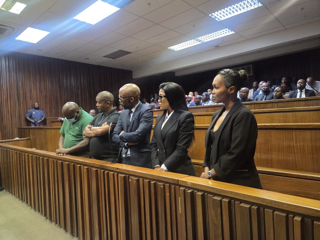 All five took their places in the dock on Friday morning, while behind them co-accused Tiego Floyd Mabusela briefly interacted with his daughter, Nthabiseng Nzama, as proceedings began.
