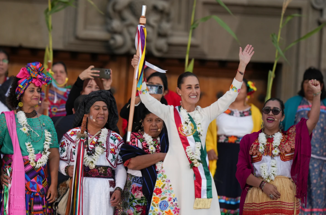 Sheinbaum was sworn in on Oct. 1, 2024, in an elegant ivory dress with a round neckline, long sleeves and colorful floral embroidery on part of the skirt. The dress was designed and embroidered by Vásquez in the style of the southern state of Oaxaca and sewn by Trujillo.