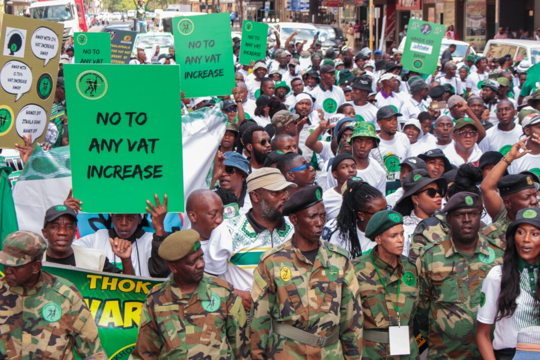 MK Party leaders warned during a march on the Treasury and the SA Reserve Bank in Pretoria on Monday that if the government increased VAT in the Budget, they would consider bringing the country to a standstill.