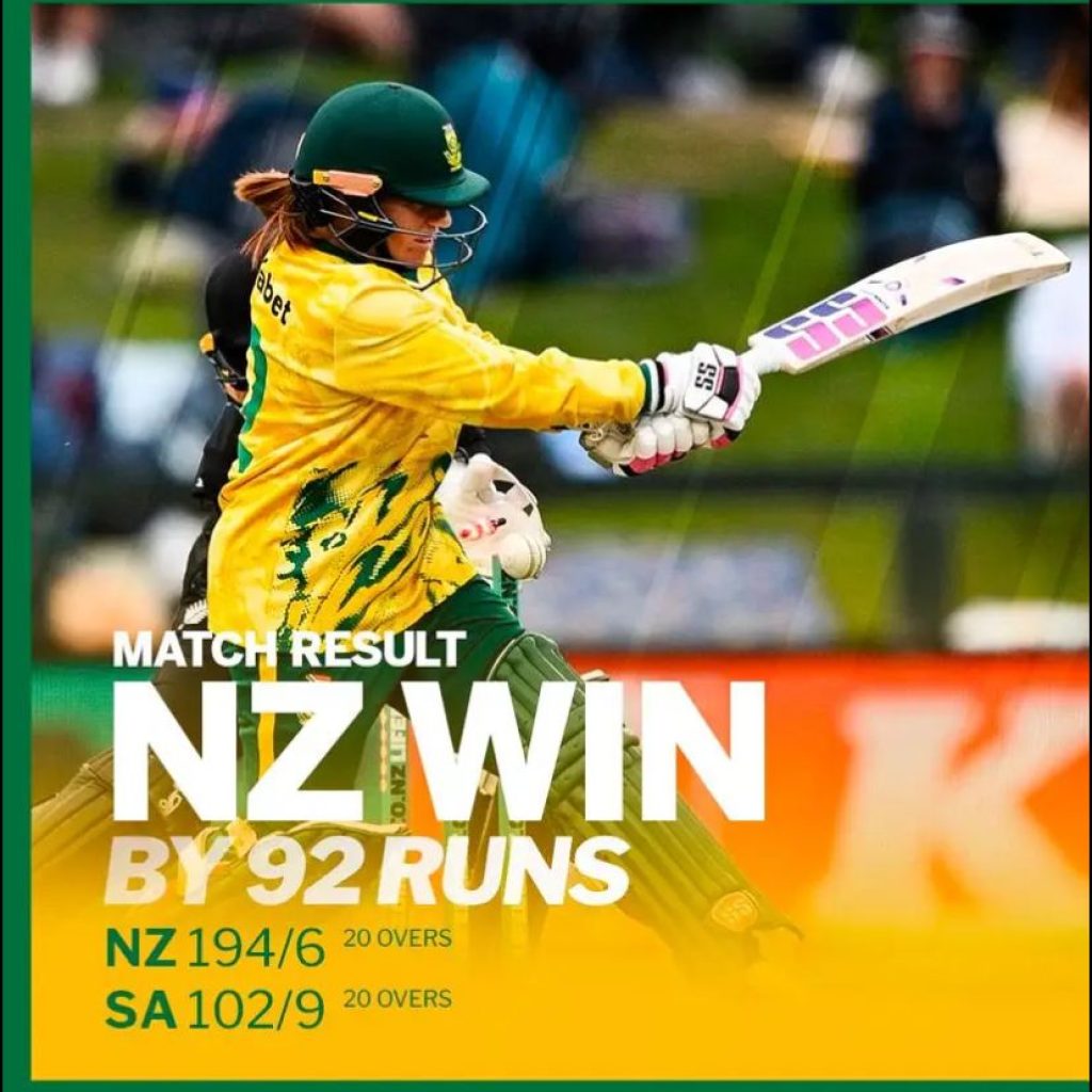 After winning the toss and choosing to bowl at Hagley Oval, the Proteas Women were put under pressure by New Zealand captain Melie Kerr, who struck an unbeaten 105 off 55 balls to steer the hosts to 194/6 in their 20 overs.