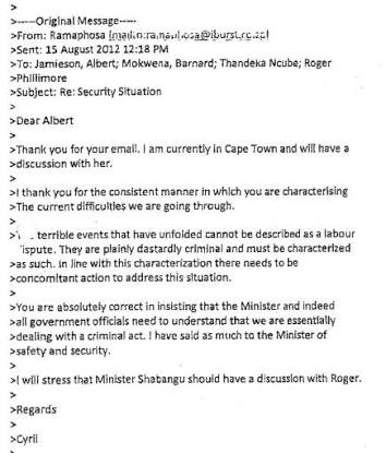 Ramaphosa has said previously that he regrets using the “concomitant action” in the email he sent during the strike.