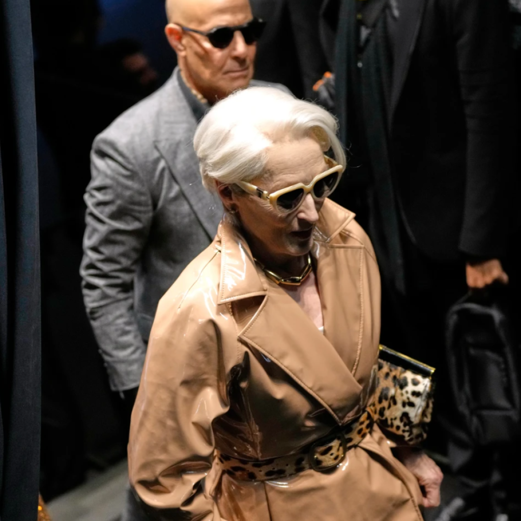 In a life-imitating-art-imitating-life meta moment, Anna Wintour, who inspired the 2006 film, sat across the runway from Streep in her role as Vogue’s global editorial director.