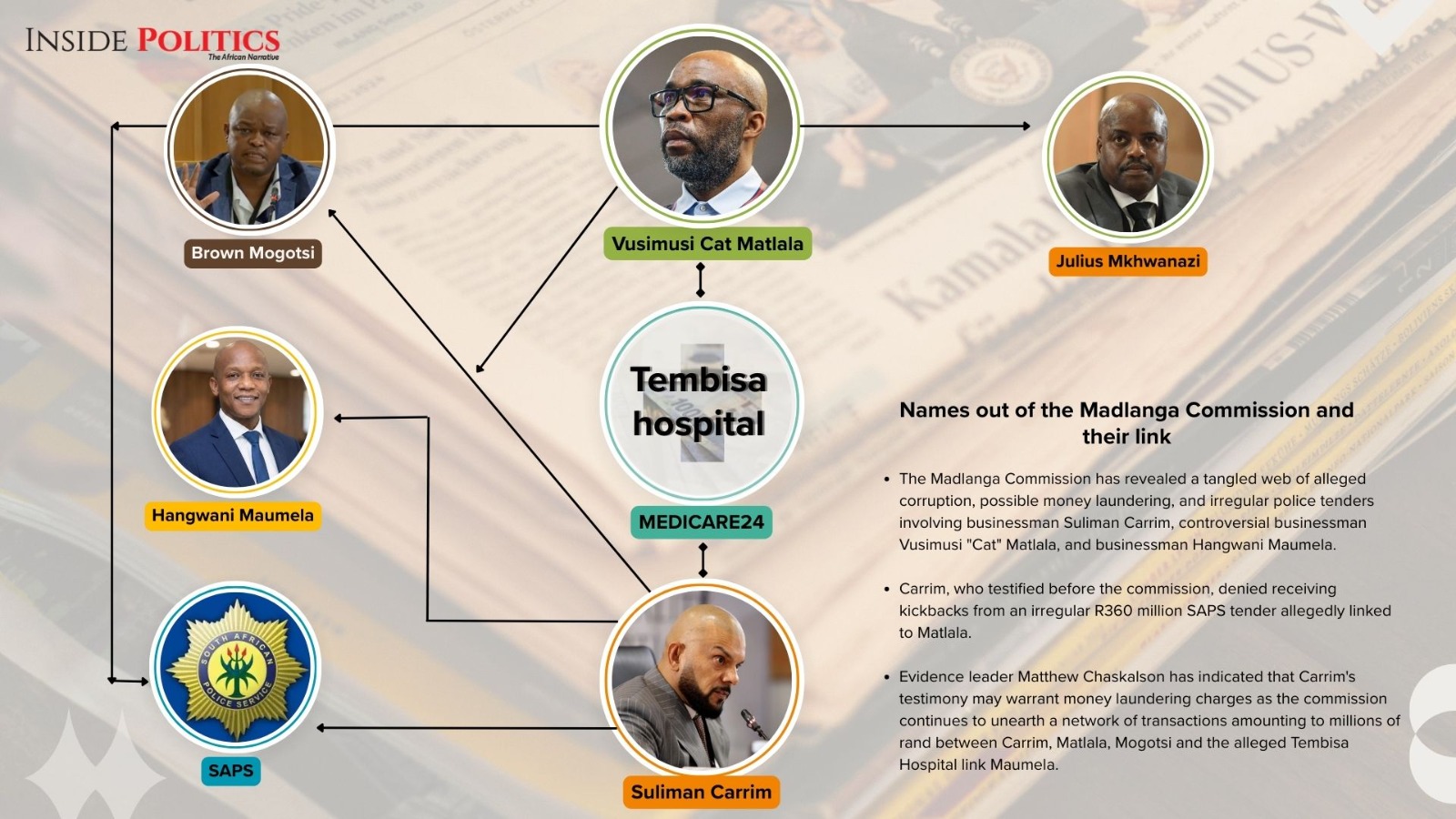 The Madlanga Commission of Inquiry has heard evidence pointing to a tangled web of alleged corruption, possible money laundering, and irregular police tenders involving businessman Suliman Carrim, businessman and alleged underworld figure Vusimusi “Cat” Matlala, and controversial businessman Hangwani Maumela.