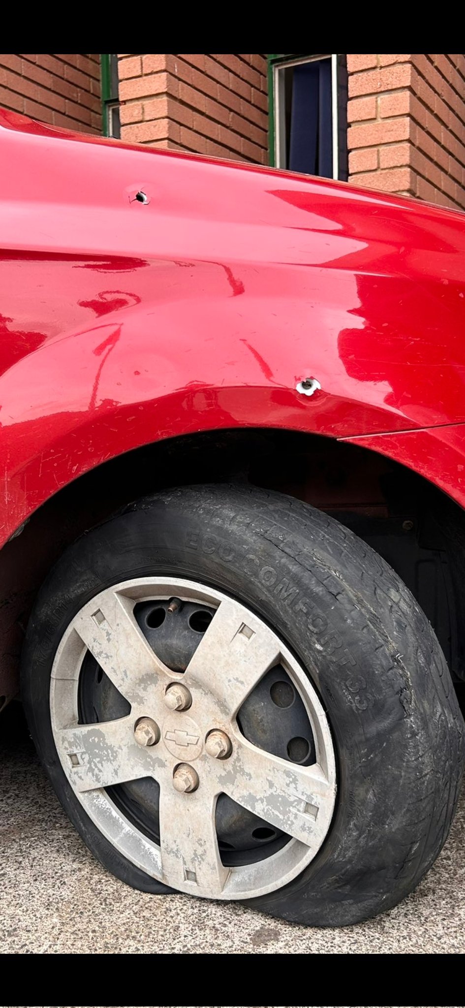 Photos and footage circulating on social media show the aftermath of the alleged hit. At least three bullet holes can be seen on the driver’s side of Mogotsi’s car, while the vehicle’s tyres appear to be shredded.