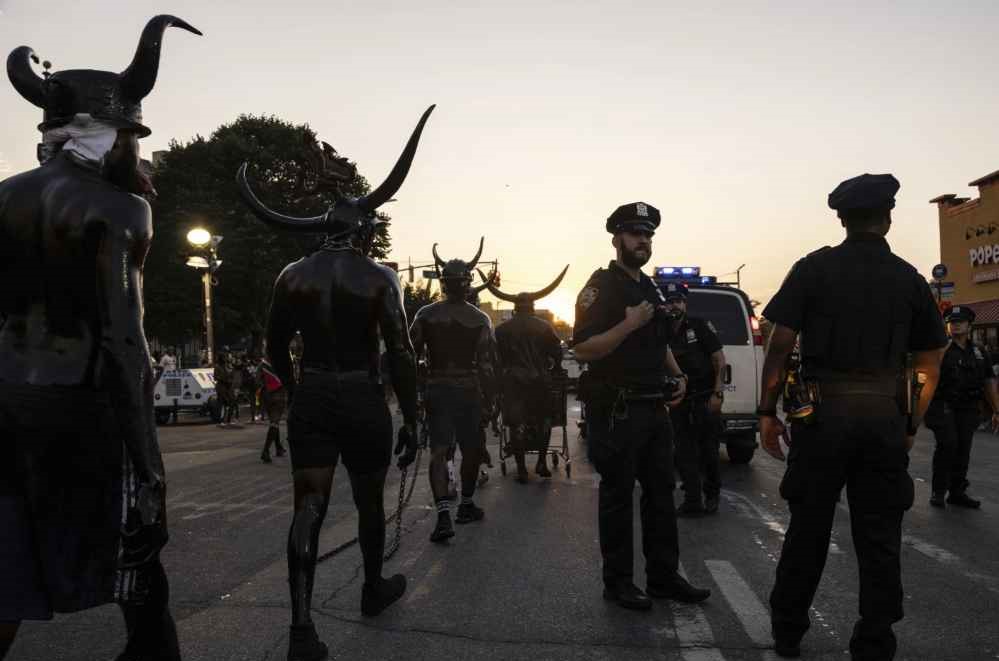 The main parade started later in the morning and featured steel drum players, stilt walkers and dancers wearing flamboyant costumes. New York Gov. Kathy Hochul and Mayor Eric Adams were among the elected officials who either showed up for the parade or marched in it.